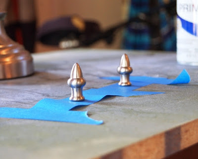 I also secured the finials by setting them on the sticky side of some painters tape.
