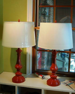 So cute! Love the lamps, the color is great. Can't wait to see what you do with the shades. I have done several lamps and I love spray painting them. It is the greatest. Yours are so cute. I'll be back to see more. Thanks for sharing.