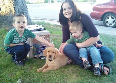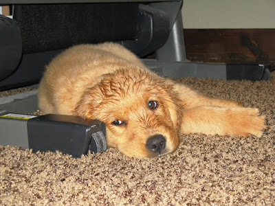 That's Maggie, our golden retriever. Her full name is Miss Maggie Moo Dinga. When we got her last August, our oldest son really wanted to name her Dinga. Really wanted to, as in 'face-crumpled-and-sobbing-began-when-I-said-no'. It was an easy compromise, though -- pick your battles, right?