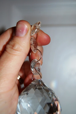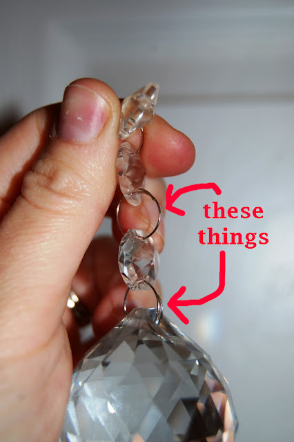One day, my two boys were messing around, being crazy, and swingin' from the chandelier. No, really. They were literally swinging from the chandelier above my bed. Nothing expensive and/or pretty was broken during the making of the mischief, but they did bend several of the metal rings connecting crystals -- and even lost one.