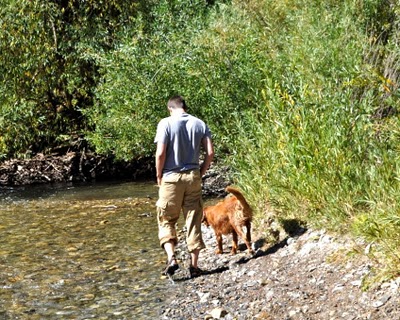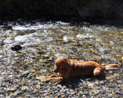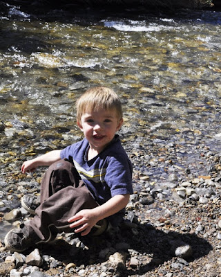 About the weekend though...we had a nice, relaxing weekend with the grandparents that ended with a picnic lunch in the canyon and a little playing in the river. (Another thought for discussion: the kids ignore our swingset, but gladly spend hours outside at grandma & grandpa's swinging their little hearts out. What gives?)