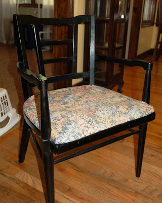 I'm working on nightstands for my parents' guest room, I'm still finishing their two lamps, plus I'm in the middle of fixing up this chair for my bedroom: