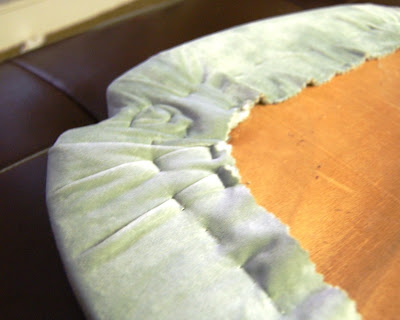 I saved some money by finding a little piece of velvety fabric on the remnant table at a fabric store. Then I put the kiddos to bed, turned on a period romance movie, poured myself some red wine and a little snackable-sized bowl of chocolate chips, grabbed a staple gun and had myself a wild time.