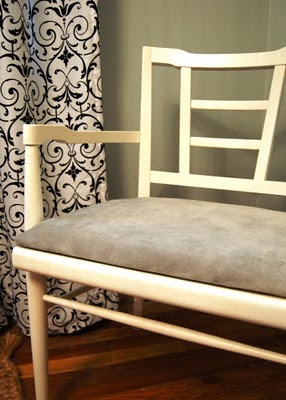 I love the lines of that chair now that it is painted and new upholstery. Great job Anna.