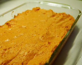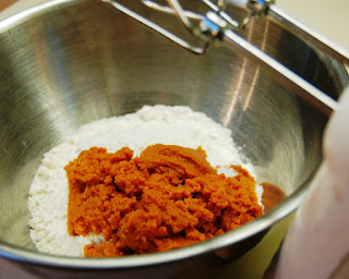 I found this recipe on the food blog Big Red Kitchen where I've found several other yummy, not-so-good-for-my-pants-size recipes. And the best part? The cake has only two igredients: yellow cake mix and a can of pumpkin.