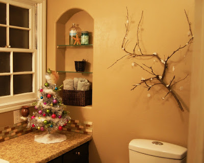 Cute bathroom! I love the white tree and that snow covered branch seems like an easy enough project. I might have to treck it out into the woods today and find a branch!