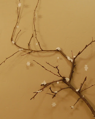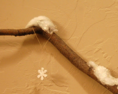 Earlier I showed you the sneak peak of my branches, so you saw that I hung snowflakes.