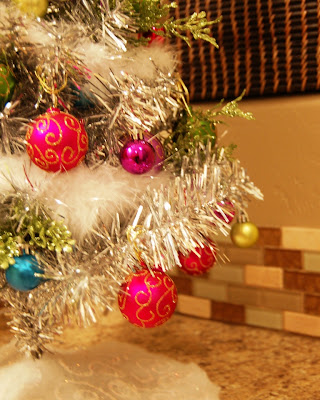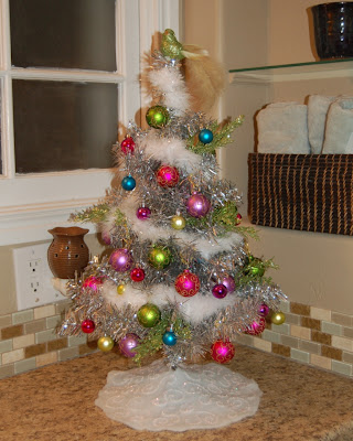 I also put a fun silver tinsel tree on the bathroom counter.