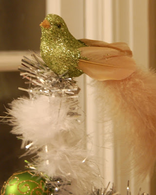 (Full disclosure: I was going to use the maribou to edge a pastel velvet tree skirt, but my sister had the idea of using it as garland -- if I don't give her credit for this she might never speak to me again. Johannah, you're a genius.)