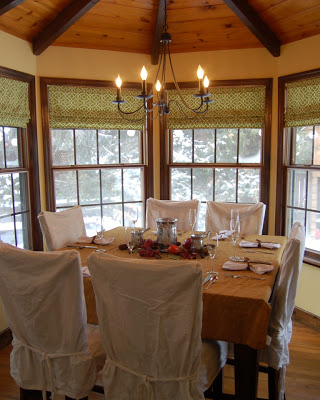 I made the fabric-covered cylinders last year after reading this post at Thrifty Decor Chick. It just took sheer fabric and some double sided tape. And some deep breaths to calm my neurotic self when it didn't turn out perfectly. Pfft. That was so last year. Very overrated, that 'perfect' thing.