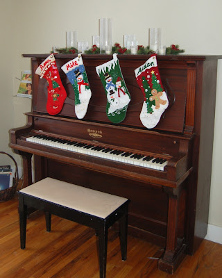I'll have to swing the stockings out of the way if I put music on the piano, and I'll need to leave Santa a pair of scissors so he can cut them down to fill them... but I'm okay with that.