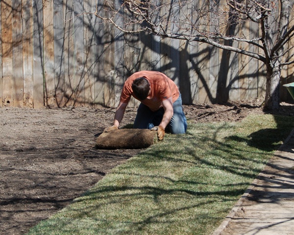 We made the tough decision to remove a tree that was toward the middle of the yard and shading everything out (I'm a big fan of trees... it was a sad day in my little world). We had the sprinklers worked on, added topsoil, and put in some sod.
