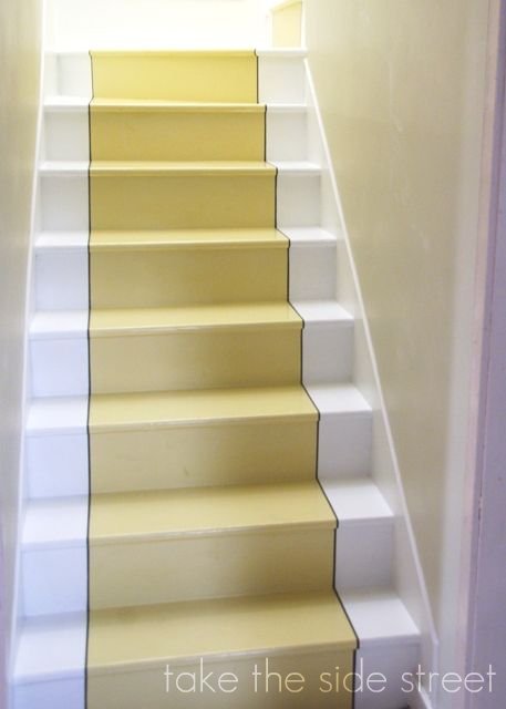 ReplyDeleteNow, that you have me interested in possibly tackling such a project on my back stairwell, did you ever consider some kind of super tape for the tiny stripe? Not sure if my old knees could handle the precision work you undertook.