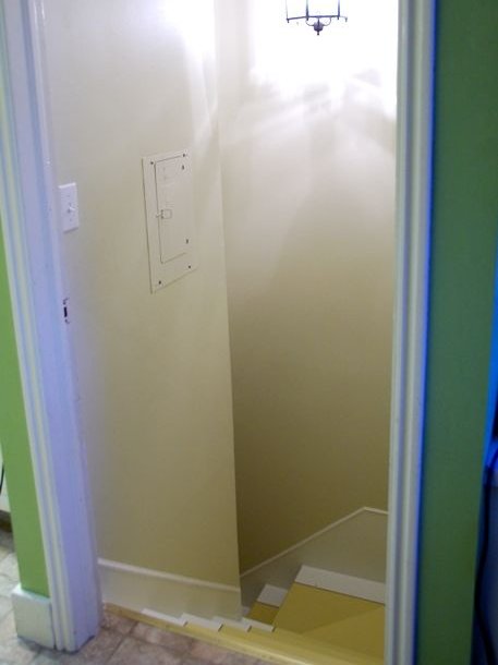 LOVE those stairs, and excellent job picking a yellow color. I had to repaint my family room twice (with 2 story high ceilings), because of picking the wrong colors. Congrats!