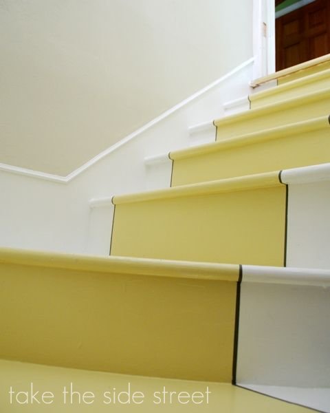 This by far is the BEST stair re-model I have EVER seen!! This belongs on TV!! I"m not saying this to be nice either, I truly am BLOWN away! I LOVE that you switched it & did the yellow in the middle, Your talent seizes to amaze me :) GREAT JOB once again!!