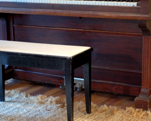 Long before my parent's piano came to live at my house a few years ago, its matching bench that I remember taking ill-fated piano lessons on as a child gave up the ghost. It was replaced with a black bench complete with a snazzy cream leatherette seat.