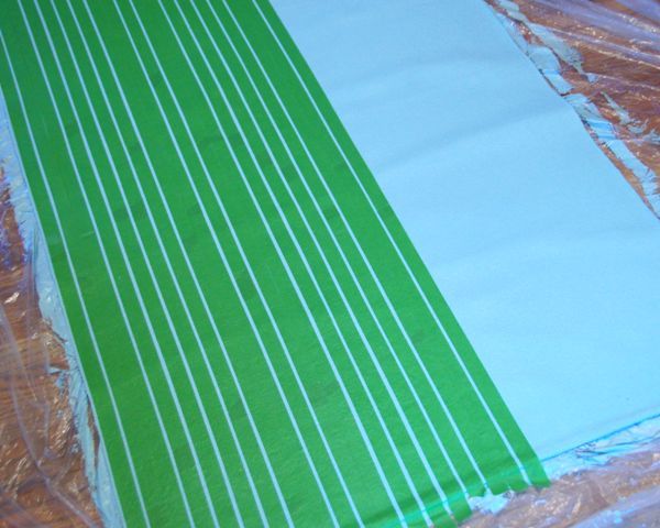 After the blue paint was dry, I started taping the stripes.