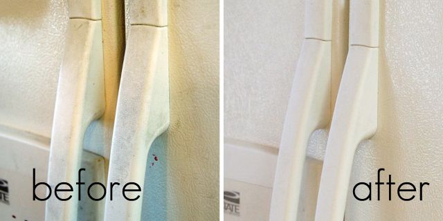 My fridge is another place that gets dirty. Little jam covered hands going for milk, you know the story. The texture on it also accumulates dirt (like vinyl flooring) and after many years of use, it looked pretty bad -- even with my weekly wipe downs, the years of dirt was still stuck into the texture.