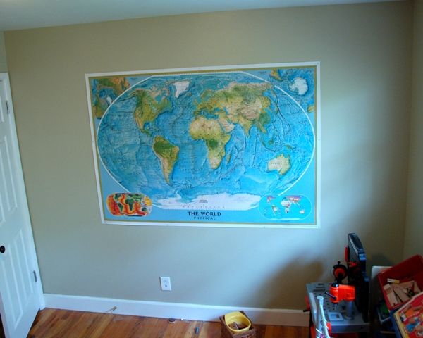 I love the idea of using maps as decor, and I think it will be nice for my boys' room because it's not really age-specific, and it reminds me of adventure and hopefully it will inspire their imagination and help them grow up thinking about other places and other people. It's educational and cool.