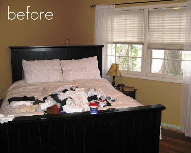 Amazing transformation. Love the kitchen cabinets and the wall color in the bedroom-- where did you get the bed frame-- love it!