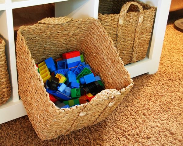 I also gleefully filled the baskets with my sons' toys. Now you can't even tell my kids use that area to play! Mwahahahaha. Brilliant, I tell you.