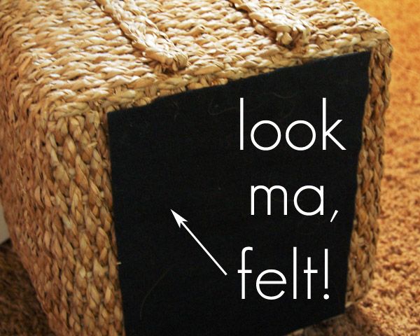 And because I'm not a big fan of basket scratches that can happen over time when you drag them along painted surfaces, I covered the bottom of each basket with a piece of felt just in case. Not sticky felt, because those were $1.99 each. Nope, I used 34-cent regular felt sheets and my trusty double-sided tape. Seriously - $8 for four sheets of felt? Apparently the adhesive on sticky felt is made of gold, or I'm totally cheap.