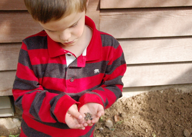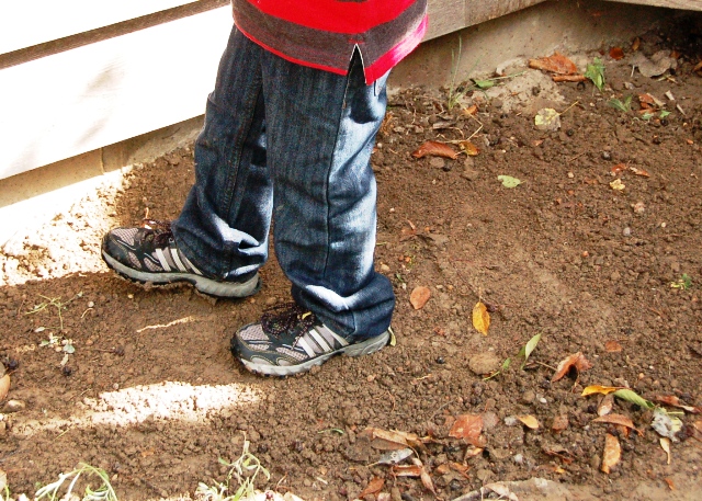 This is where we improve upon nature's design. Instead of just leaving them there, make your kid walk on them. Tamp the earth down to keep your little seeds from blowing away or getting whisked away in a fall rainstorm.