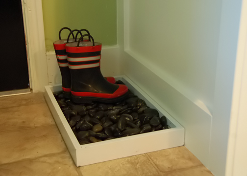 Boot trays help corral the mess of fall and winter -- any wet shoe-like accessory (ahem. shoes.) you place on them will drip onto the rocks, where the mess (dirt, snow melt, etc.) will be contained and will evaporate, leaving your floors cleaner. Brilliant? It just may be.