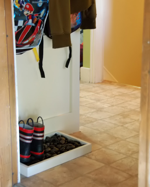 I have seen this around and am thinking of making one. We have a rubber mat with sides that is specifically for boots (it's by the door in the mud-room.) However, the snow melts off the boots and then they sit in the water. Rocks might help them drain.... I like how you did yours. I found your blog on "31 days" and have really enjoyed following it!