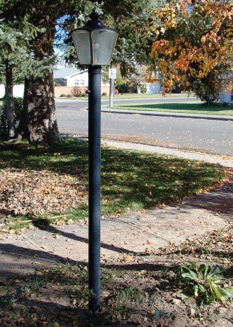 Ta da! I'm sure my neighbors love me right now. Mike thinks it looks like it should be the Narnia light post, which I choose to take as a compliment. I'm just glad it isn't pathetic and rusty anymore: