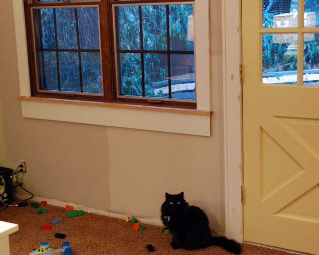 I'll spare you all the photos; just imagine what it would look like if someone opened up two quarts of paint and flung them around in a fit of change-induced excitement. My poor husband wasn't even surprised, he's so resigned to my decorating and DIY obsession. He glumly accepts zebra striped walls as a fact of life.