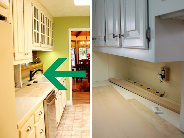 Yep, we tore those doors down and then lived for 2 1/2 years with giant gaping holes at the back of our counters and (I'll admit it) exposed nails. Classy.