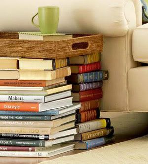 When you can't walk into a bookstore without taking advantage of those sneaky 'buy 2 get 1 free' book deals, those books will undoubtedly begin accumulating. You need to put them somewhere, and naturally you want them within easy reach for when you're jonesin' for your next Mr. Darcy fix... what to do? Incorporate them into your decorating, of course!
