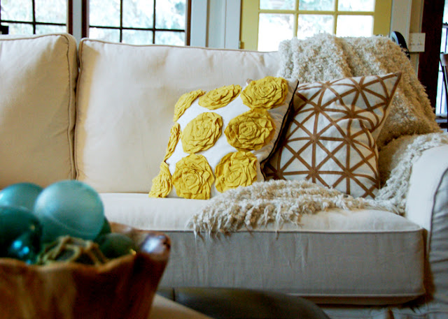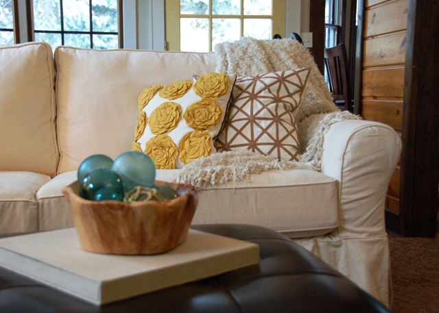 So I was driving home from running an errand around the turn of the year and an invisible force guided my car into the DownEast parking lot. Fate? A twitchy right arm? We'll never know. I walked in to see that all clearanced home items were on special for an extra 30% off over the weekend. That was enough to initiate a little impromptu perusing... little did I know that one of the couches I had been admiring from afar during my occasional visits to the store was on clearance.