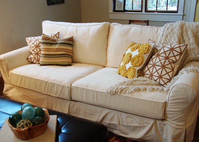 So fabulous!!! I was doing back-flips when we got a FREE couch and chair from Ikea http://flutterflutter.ca/2011/06/27/save-your-reciepts/ and I can attest to the fact that when you toss a glass of red wine from one end to the other you'll be happy you have a slip covered sofa! It's way easier when you can strip down the furniture. ;)