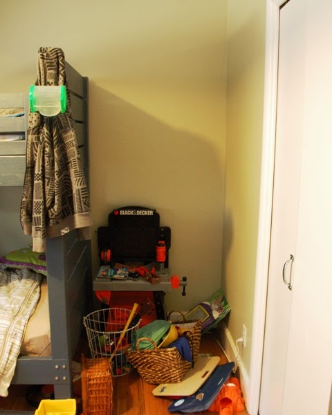 As your little boys get bigger they may need a space to do their homework. I think a combo of (top down): cubby shelves, chalkboard, and desk would be great!
