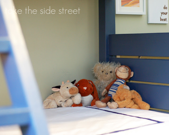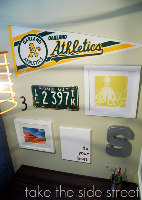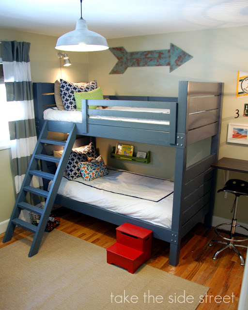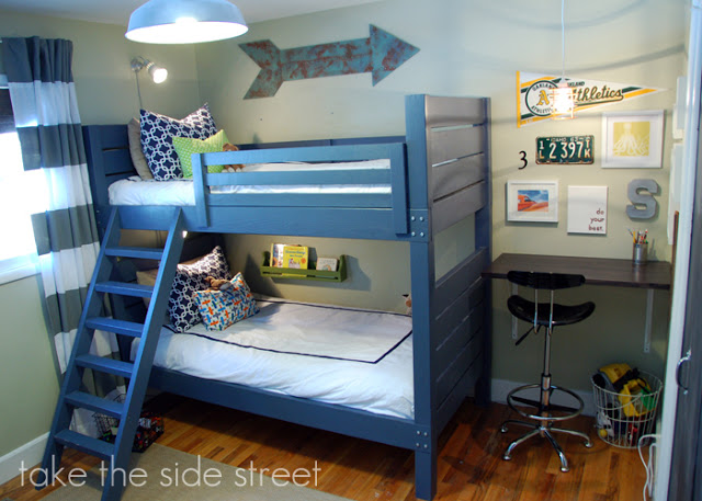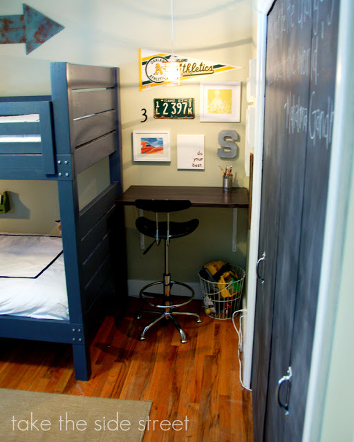 Love everything about this space! Truly, truly amazing. You made such great use of every nook and cranny ... and loving the wall art (and now am thinking that I may need to hang some license plates in my own son's redo ...