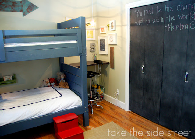 Oh my gosh, it looks really, really great Anna!! Love the gallery wall. Love the chalkboard closet doors. Love the mix of patterns. You seriously nailed it!!!!!!!!