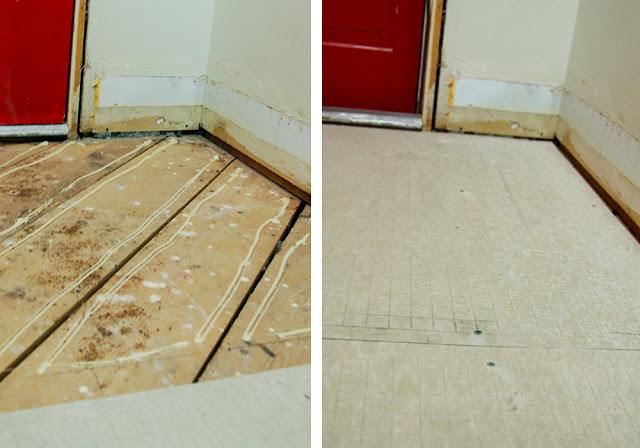 After sweeping up the mess and carefully pulling up any leftover nails or staples from the tar paper, my entry way was a clean slate.