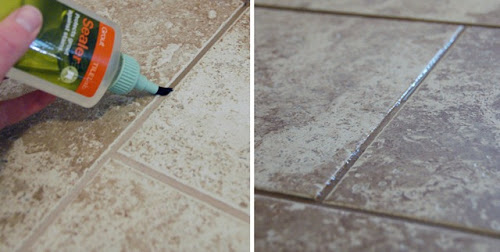 It's very easy to apply -- just squeeze it out along the grout line in as even a fashion as possible, let absorb for a few, go back over for a second coat, and then carefully wipe up any sealer that has gotten on the tile surface as it will leave a haze once dry that's very difficult to remove.