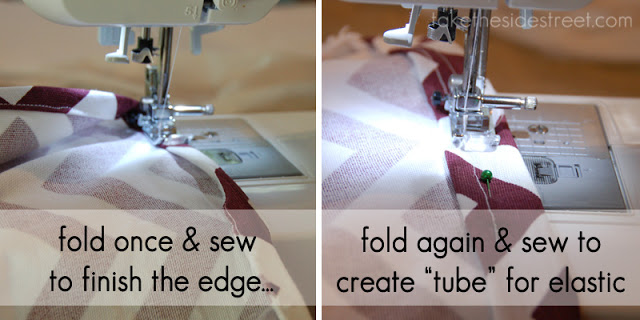 Then I picked one of the ends of the big tube to be the top of the skirt, and created a place to run a band of elastic for the waist (leaving about 4 inches open so I could thread the elastic in):