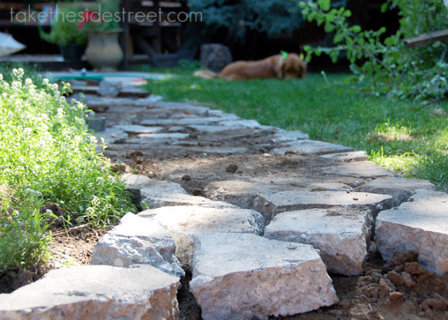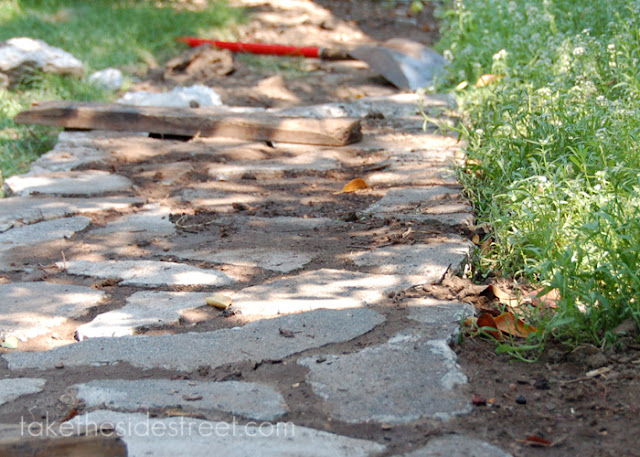 I can't wait to see what it looks like when it's done -- and then to share it with you guys. I'm already loving its potential. Imagine little plants growing in the cracks next year. Imagine stubbed toes instead of stabbed toes. It'll be brilliant!