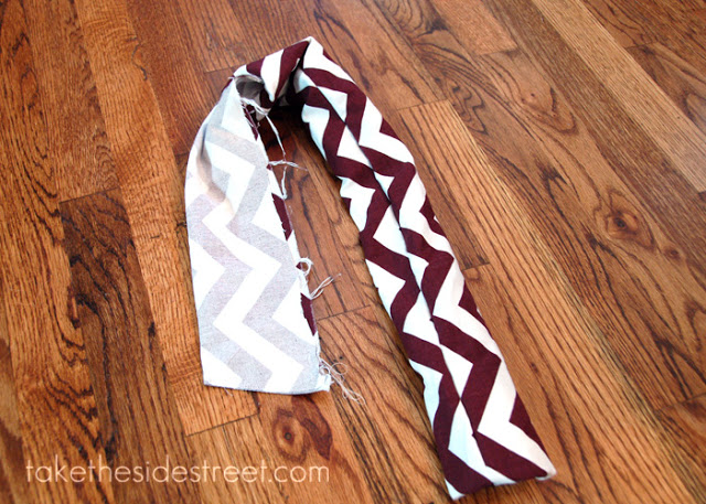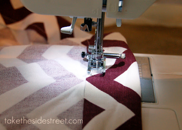 Earlier this year when I was working on my boys' bedroom makeover, I ordered several fabrics for pillows and was sent a wrong fabric by mistake. The company sent the correct fabric out right away and told me to keep the 1 yard of chevron fabric I received by mistake. I had no idea what I was going to do with it as maroon is not a color I use in my house.