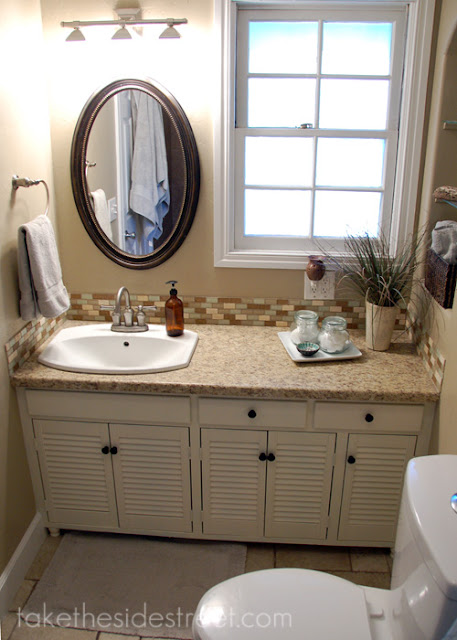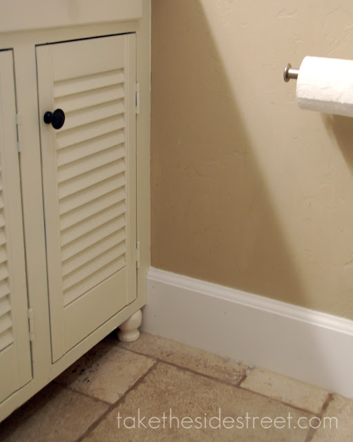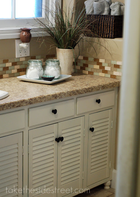 I knew I wanted a change, but I still wasn't sure how I would feel about the whole thing. What a pleasant surprise it was to discover that I liked it! I switched out the knobs for a darker set which now makes my bathroom a mix and match wonderland -- something that would have made my eyeballs twitch 7 years ago. Now I like it... but now I also wouldn't buy a matched furniture set. Matching is overrated.