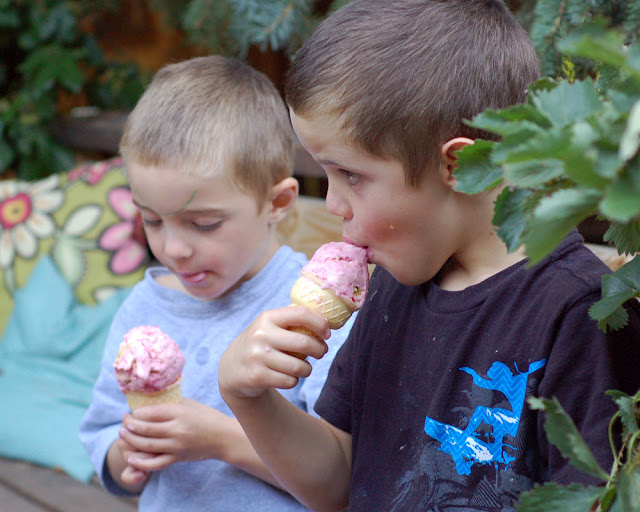 My boys are starting 2nd grade and Pre-K today, and while I am looking forward to my school day break and getting back to a routine, I can't help but feel a twinge of sadness at summer's end and the boys' insistence on growing up. We marked the occasion yesterday by making some frozen yogurt and then eating it, because that's what normal people do with frozen treats.