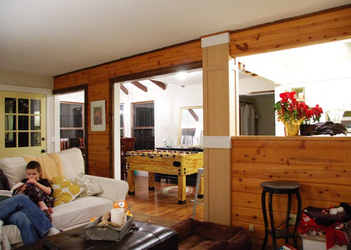 First up, the paneled wall in my living room that has been on my "to paint" list since... oh, forever. Now that there's an unpainted column in the middle of it I was forced to admit that two unpainted wrongs don't make a right.