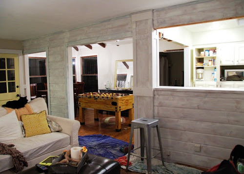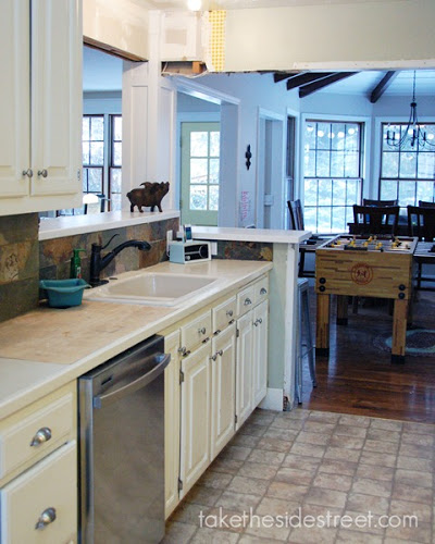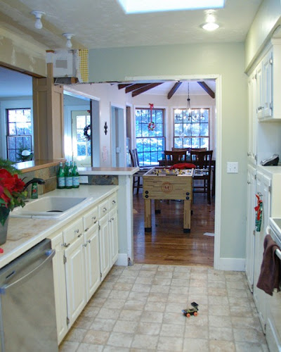 Okay, it's less finished. And there's a giant foosball table in my dining room because we're too lazy to take it apart and move it downstairs. But can't you see the potential? It's already so much more open and it feels less like the galley kitchen that it is. Progress!