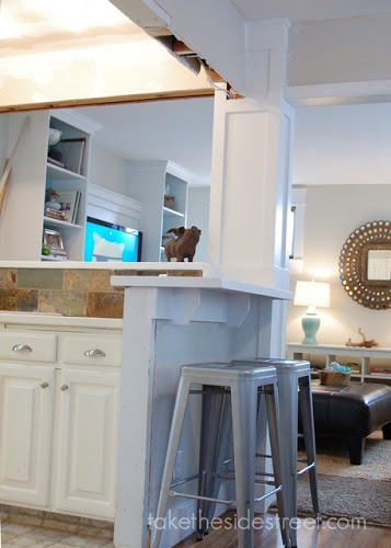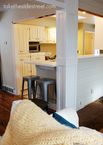I like them! I think I'll like them even more once that wall and column is painted. My kids like them! They're happy to be able to sit up there and have a snack or keep me company while I cook. Mike...doesn't like them. Oh well -- you win some, you lose some. Maybe they'll grow on him.