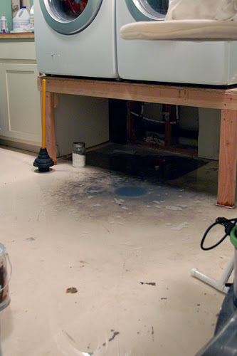 We had plumbers come and look at it -- they climbed on the roof with a snake and cleaned it out, but they said some older homes just have problems like this that come back repeatedly, and worst case scenario we'd have to replace the main line (ouch! expensive!). I cried a little inside when they said that. A year and a half later it happened again and we called more plumbers. Even when the line was clear it was always slow, and I knew it was only a matter of time before I walked downstairs to a flooded laundry room again.