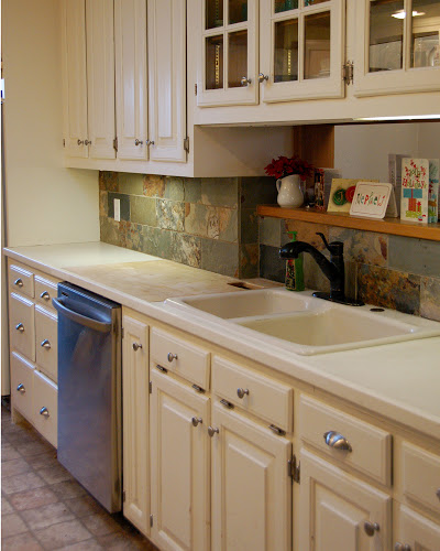 1. Replacing the existing laminate counters -- I'll stick with laminate again as it doesn't make sense to upgrade to a more expensive material in our neighborhood, even if I wanted to spend the money on it right now. I will be using a higher end laminate (as much fun as the beige graph paper counters have been...)